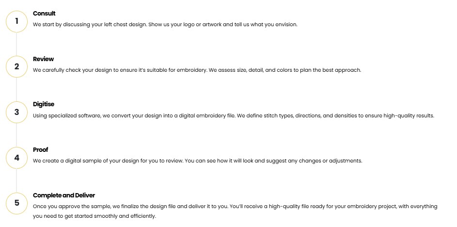 Thank you for visiting Sparrow Merchandising! Our passion is providing Left Chest Digitizing and Embroidery Digitizing Services. Our aim is to transform your concepts into striking embroidered pieces that accurately reflect your company.
